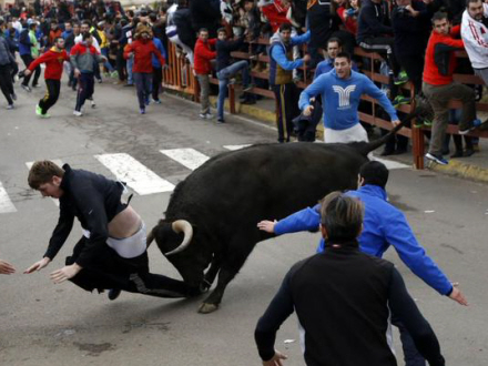 En tilskuer fangede øjeblikket, hvor tyren fanger Miller og kaster ham op i luften med hornene. Tilskuere skriger i folkemængden, mens nogle skyndte sig at forsøge at distrahere tyren og trække Miller i sikkerhed.
