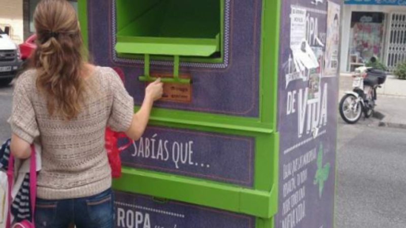 En kvinde i Ciudad Real ville donere noget tøj til de, der ikke har så meget, og hun smed nogle poser i en container til genbrugstøj.