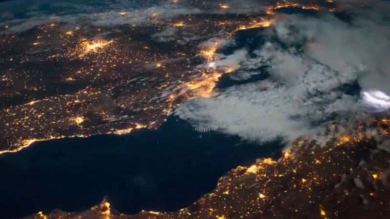 Ny video indspillet fra rummet af den italienske astronaut Paolo Nespoli fra Det Internationale Rumagentur viser lynene glimte i uvejret i sidste uge.
