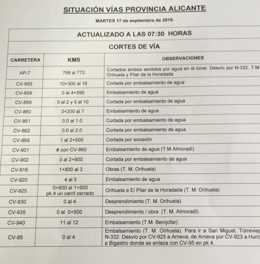 Her til morgen blev N332 endelig åben ved km 74, men der er kø på grund af vandet. Kør meget forsigtigt, lyder det fra Guardia Civil.
