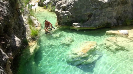 El Azud-Pozo de las Escaleras – som er navnet på denne herlige naturpool - ligger i den lille landkommune Tuéjar i den skønne og frodige dal mellem floderne Turia og Río Tuejar.