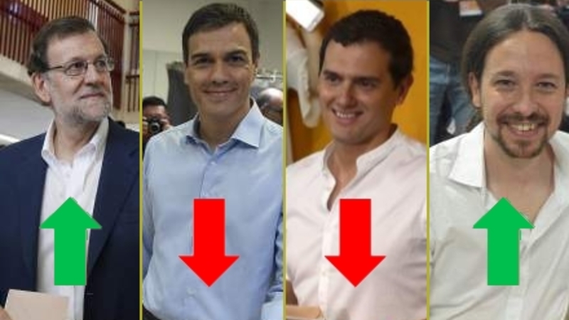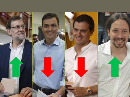Unidos Podemos, der i meningsmålingerne var spået en markant fremgang, måtte selv efter koalitionen med IU nøjes med en fremgang på to mandater fra 69 i december til 71 i dag.