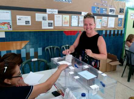 Spanien i Dags redaktør, Kathrine Hesner, stemmer til kommunalvalget i Fuengirola med hvid kuvert