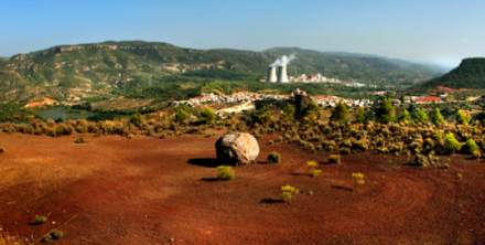 Fra bakketoppen er der udsyn til atomkraftværket i Cofrentes