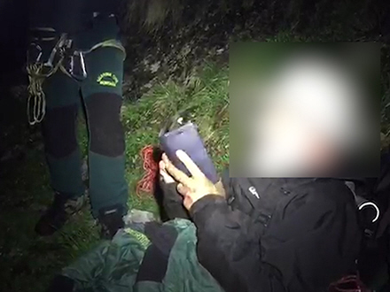 Betjente måtte til fods kravle frem til den nødstedte og give ham en frakke og noget mad. Derefter var de tvunget til at tilbringe natten på bjerget sammen med ham i en lille hjemmebygget bivuak.