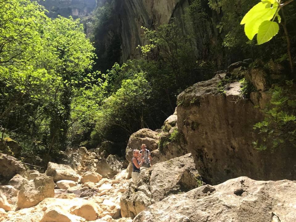 Efter at have gået de 261 meter nedad havner vi i et semi-udtørret flodleje, som vi følger et par hundrede meter “mod strømmen”.