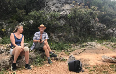 Efter spisepausen og lidt udforskning på bunden af kløften påbegynder vi opstigningen. Og selvom vi da napper lidt flere pauser undervejs, er det faktisk slet ikke så hårdt som frygtet.