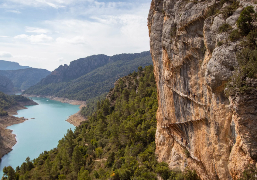VIDEO: Driv lydløst på spejlblankt vand mellem høje klippesider i Catalonien - eller gå på bjergvæggen højt oppe.