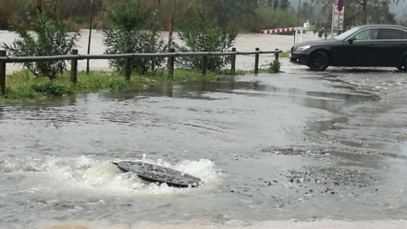 Hele den sydlige del af landet er ramt af et kraftigt uvejr fra Atlanterhavet, som giver regn, blæst, oprørt hav og torden flere steder.