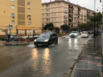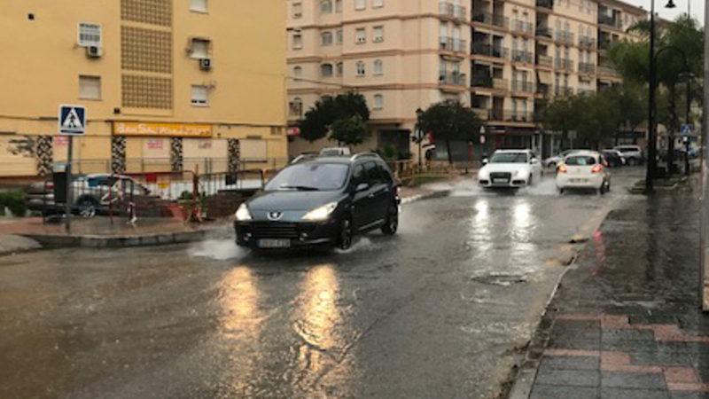 Avenida de Mijas er stadig farbar, men fodgængerne får våde fødder: