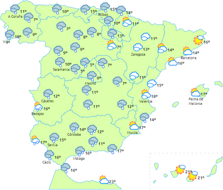 Lettere temperaturfald i de fleste områder undtagen i Catalonien og Ebro-dalen, hvor der ikke ske meget.