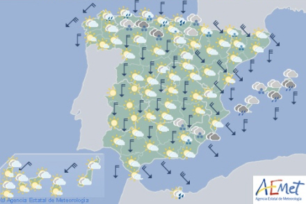 Faldende dagstemperaturer til den østlige halvdel af halvøen og på De Baleariske Øer. Nætterne bliver også køligere med udbredt frost i de indre egne - hård frost i bjergområderne på den nordlige halvdel. Stærk frost i Pyrenæerne, og svage til moderate frost i de nordlige og sydøstlige områder af halvøen.