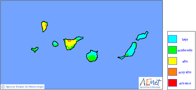 Risiko for den meget støvholdige vind, calima, på den sydvestlige del af halvøen.