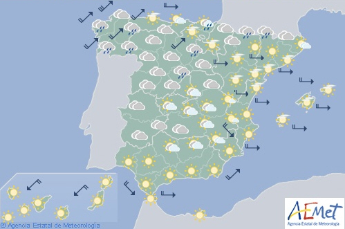 Stigende dagstemperaturer på store dele af halvøen og De Baleariske Øer. Få ændringer på De Kanariske Øer. Unormalt høje temperaturer for årstiden på den nordlige halvdel af fastlandet, Guadalquivir og i Middelhavsområdet.