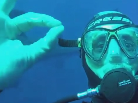 VIDEO: Fritidsdykkere får deres livs oplevelse, da verdens største fisk lægger vejen forbi Kanarieøerne.