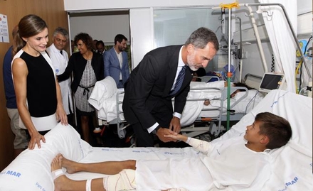 Her besøger kongeparret en såret dreng på Hospital del Mar