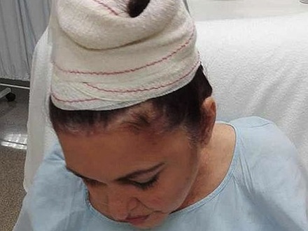 Kvinden blev ramt af hovedet. Heldigvis kom hverken hende eller datteren alvorligt til skade, men politiet beder alligevel offentligheden om hjælp.