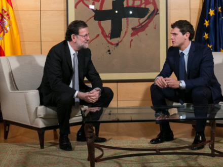 POLITIK: Rajoy og PP vil ikke støtte den nye regeringsaftale, som derfor hænger i en tynd tråd. Nu inviterer Albert Rivera i et sidste desperat forsøg premierministeren op til dans.