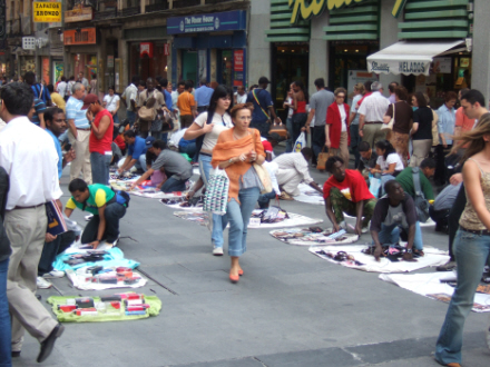 Gadesalg på den måde er ulovligt i Spanien, men sælgerne har ikke rigtigt noget valg og bliver ved med at sælge uanset bøder. Derfor giver det måske mere mening at straffe i den anden ende af handlen.