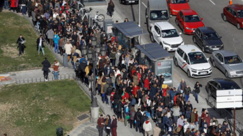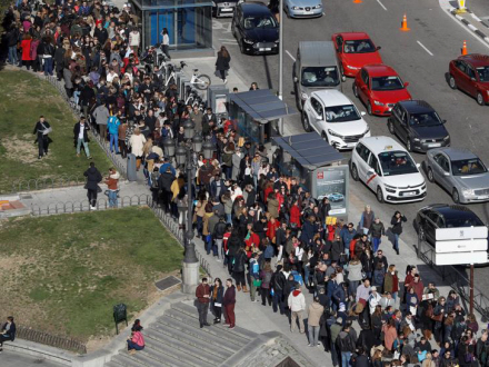 På trods af faldende arbejdsløshed trodsede flere tusinde blæst og kulde, da de i sidste uge troppede op ved Plaza de España for at aflevere en ansøgning til et job på et nyt fem-stjernet hotel.