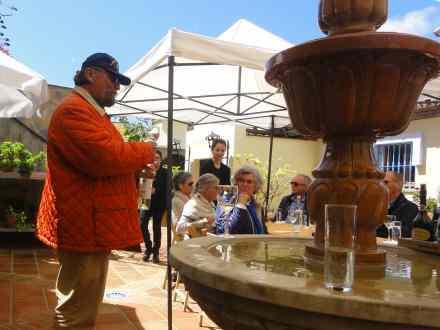Vi får en rundvisning på stedet, ser en lille film inde i en gammel kirke om stedets historie og udvikling og så er der vinsmagning og lækre tapas. Der er ikke tale om en klat olie og noget tørt brød, men virkelige lækkerier i gastronomiklassen.
