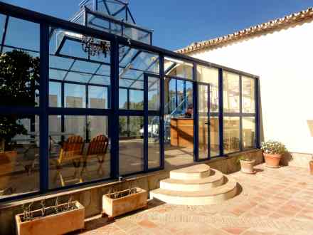 Indgang til orangegeriet fra patioen. Udsigten til den anden side er til naturreservatet Grazasalema