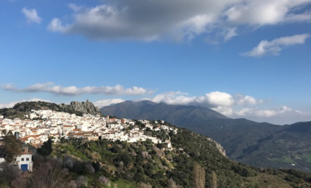 På vejen drikker vi en kop kaffe i den charmerende bjergby Gaucín og spiser en 'tostada con ajo, aceite y tomate' ledsaget af én af de fineste udsigter, man overhovedet kan støde på.