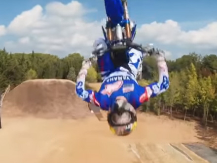 VIDEO: Lynhurtig drone følger med og tager billeder, mens motocross-legende giver imponerende opvisning af halsbrækkende stunts på sin tohjulede ræser.