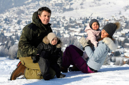 Også den danske kronprins boltrer sig i disse dage i sneklædte bjerge. Frederik har dog følgeskab af både Kronprinsesse Mary og deres fire børn på det schweiziske skisportsted Verbier.
