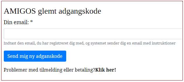 Hvis ikke får du en besked om, at emailen ikke eksisterer blandt Amigos, og du derfor skal skrive den rigtige.