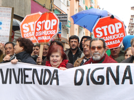 Demonstranter fra pressionsgruppen Stop Desahucios (Stop Udsættelser), siger at den afdøde var blandt gruppens medlemmer, og han havde længe kæmpet mod at hans familie blev sat på gaden, da de på grund af arbejdsløshed ikke kunne betale af på en gæld på 100.000 til banken.
