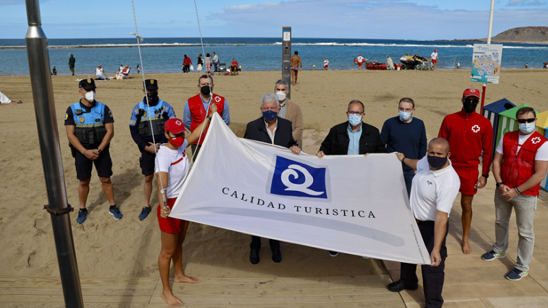 Q-flaget, der hænger på stranden ved Tomás Miller Spa, blev symbolsk hejst mandag morgen af Pedro Quevedo, rådmand for turisme, og José Eduardo Ramírez, rådmand for Ciudad de Mar. De var ledsaget af direktøren for Las Palmas Røde Kors' nødhjælpsenhed, Aarón Martín, og Fernando Lanuza, der er delegeret for OCA GLOBAL i Las Palmas samt repræsentanter for FCC, der står for vedligehold og rengøring af strandene.