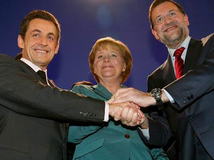 Under et møde i går med den tyske kansler, Angela Merkel, og Frankrigs præsident, Nicolas Sarkozy, fremsatte Spaniens kommende konservative regeringsleder krav om indgåelse af en aftale, som ”med alle midler sætter en omgående stopper for statsgældens hjerneblødning”. Dermed bakker Spaniens kommende regering op om et forslag fra de økonomer, som kræver en styrkelse af EU's finanspolitik.