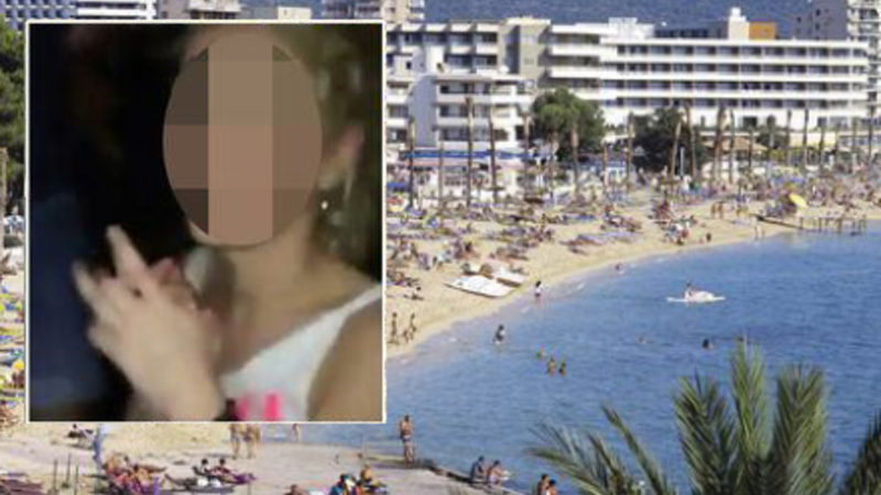 En video på youtube.com viser en 18-årig britisk pige på hendes knæ i en bar i Magalluf. Hun giver oralsex til 23 mænd i løbet af to minutter. Tilskuere jubler, og optagelserne er nu vandret rundt på nettet og de sociale medier.