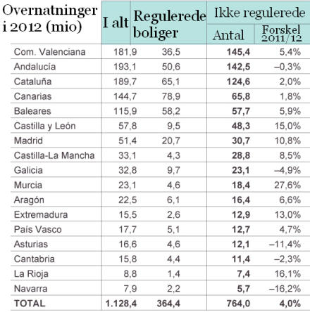 Andelen af ikke-regulerede overnatninger er overvældende (kilde: Anuario 2012 La Caixa)