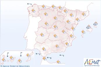 I morgen vekslende skydække, i løbet af dagen klarer det op og der kommer en del sol. Op til 24 grader. Svag vind fra nordøst. Om natten mere skyet og ned til 18 grader.