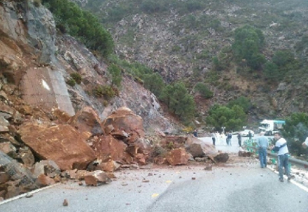 Bilister var mere en almindeligt heldige, da et kæmpe stort klippestykke faldt ned og blokerede A397, der forbinder Ronda og Costa del Sol.