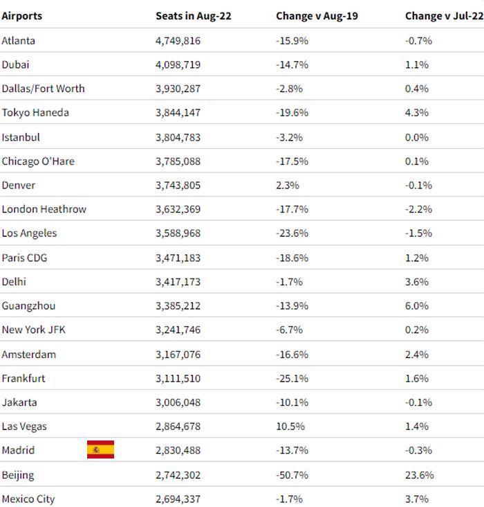 Analysevirksomheden OAG, publicerer hver måned en analyse på baggrund af data over flyselskabernes operationer målt på deres kapacitet. I august lå Ryanair på en femteplads kun overgået af de fire største amerikanske flyselskaber.