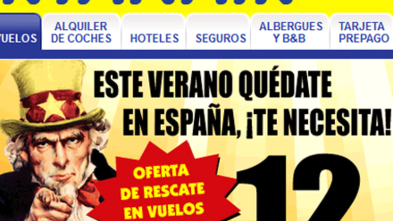 Det er ikke kun amerikanske mangemillionærer, der forstår at udnytte krisen i Spanien. Flyselskabernes frække gadedreng Ryanair forstår at spare reklamepenge gennem sine kreative annoncer, der - som her - bliver omtalt i alverdens medier.