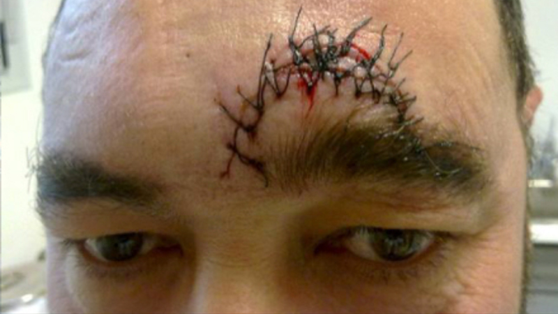 Det resulterede i en ordentlig flænge i panden og en tur på skadestuen.