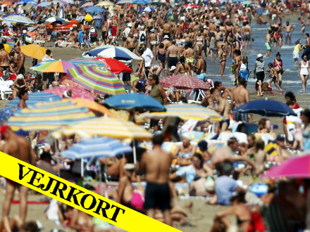 Madrid får i dag mellem otte og 21 grader, Barcelona mellem 12 og 21, Valencia mellem 14 og 24 og Málaga mellem 16 og 23 grader.