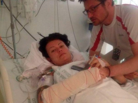 24-årige Amy Wigfull har brækket ryggen, skuldre, bækken og flere ribben, hun har blødninger i hjernen og en punkteret lunge, efter at hun t...