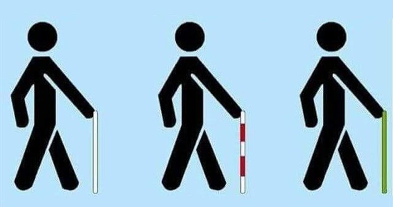 Farverne på stokkene er ikke tilfældige, men mange mennesker kender ikke forskellen mellem dem, hvilket kan være nyttigt, når man skal hjælpe en handicappet.