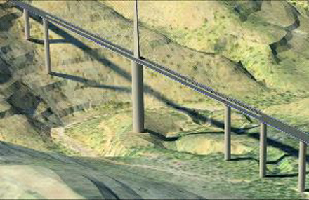 Den projekterede bro over floden Cerro Gordo er en kombineret søjle- og hængebro.