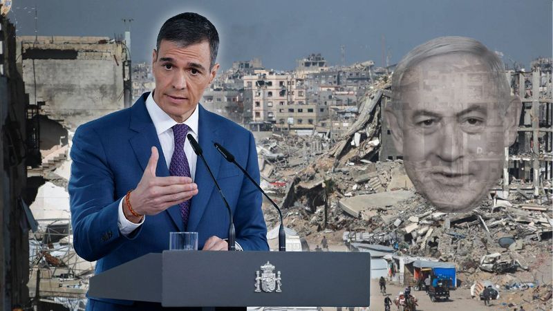 Fra trappen til Moncloa-paladset mindede Sánchez om, at Spanien altid har fordømt Hamas' angreb den 7. oktober 2023, såvel som Israels ret til at have sin egen stat, men præciserede, at det ene er at beskytte dit land, og noget andet er at bombe hospitaler og lade uskyldige børn dø af sult.
