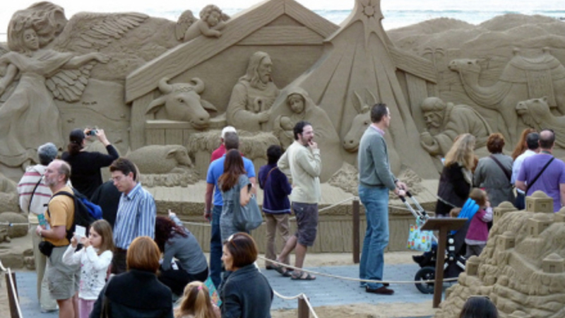 Det er syvende år i træk, der er lavet en julekrybbe i sand på Canteras-stranden.
