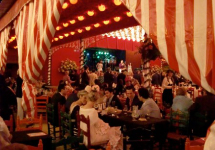 Under den åbne himmel er stemningen lige så intens som indendørs. Ryttere iført læderbukser, støvler og bredskyggede hatte rider gennem området sammen med deres bagsæde-passagerer; kvinder i farvestrålende flamenco-kjoler.