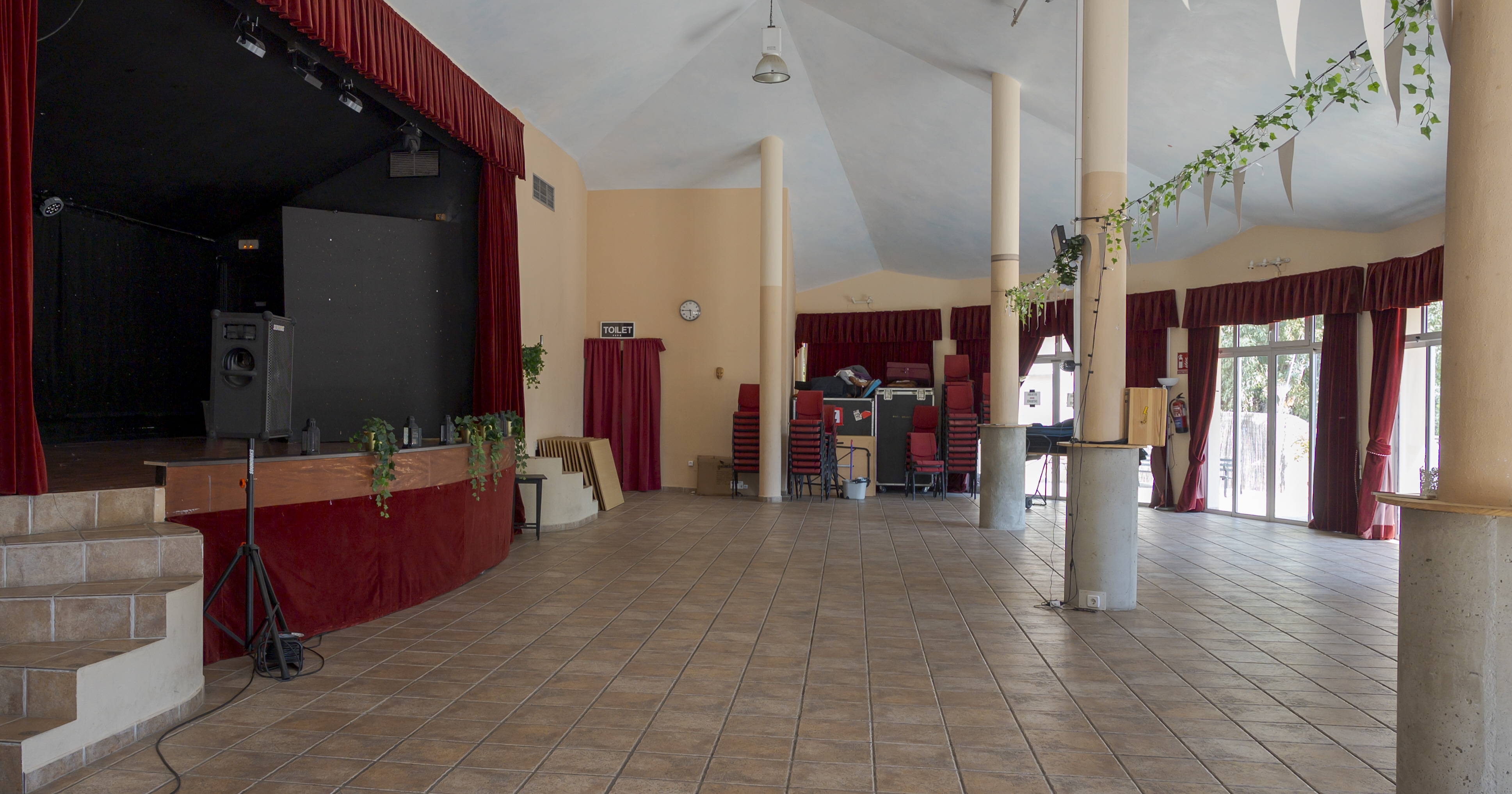 Den indendørs koncertsal får stole sat frem til koncerten
