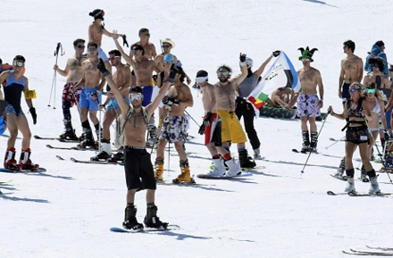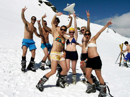 300 unge studerende fra universitetet i Granada havde besluttet at lukke sæsonen med en ski-fest iført badetøj. Pigerne i bikini og mændene i både bermuda'er og 'speedos.'