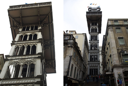 Nu er vi ikke så interesserede i kirker, så vi slendrede bare rundt i kvarteret for at nyde stemningen og få et bredt indtryk. Til gengæld prøvede vi 'Elevador de Santa Justa', en elevator fra 1902, lavet som en jernkonstruktion i neo-gotisk stil. Da Lissabon ligger på en bakke, har byen flere af disse elevatorer og kabelbaner – furnicularer.
